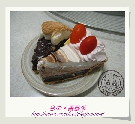 大概因為季節不對吧!所以草莓慕斯派上沒有草莓,只有兩顆小蕃茄